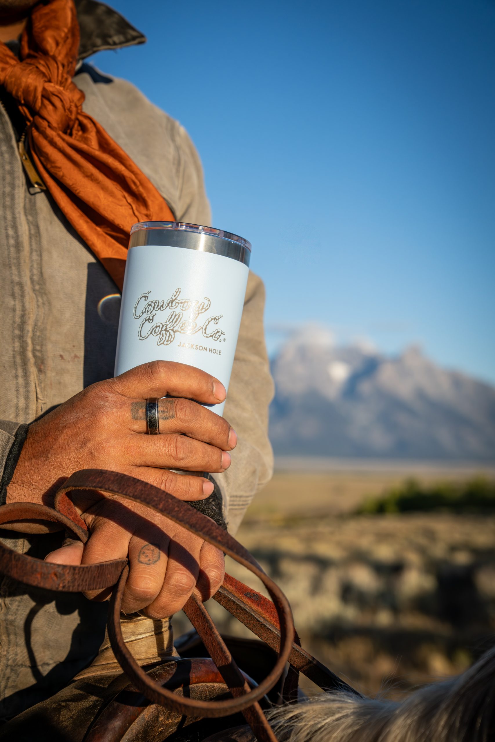 Take your coffee further with the Cowboy Coffee Co. 20 oz YETI Rambler. Designed with double-wall vacuum insulation, it keeps your drinks at the perfect temperature for hours—hot or cold. Featuring a MagSlider™ lid for added convenience and available in White, Stainless Steel, Camp Green, Big Wave Blue, and Cosmic Lilac, this rugged tumbler blends durability with style while carrying the Cowboy Coffee Co. name.